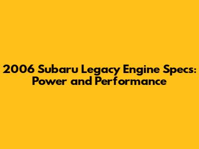 2006 Subaru Legacy Engine Specs: Power And Performance