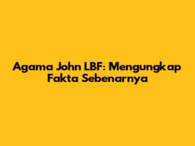 Banyak yang penasaran tentang agama John LBF. Setelah ditelusuri lebih lanjut, John LBF diketahui beragama Kristen. Informasi ini bisa ditemukan dari berbagai sumber, termasuk wawancara dan postingan di media sosialnya. Sebagai seorang Kristen, John LBF seringkali menunjukkan nilai-nilai kebaikan dan kasih dalam setiap tindakannya. Ia juga dikenal sebagai sosok yang taat beribadah dan selalu mengutamakan Tuhan dalam setiap aspek kehidupannya.