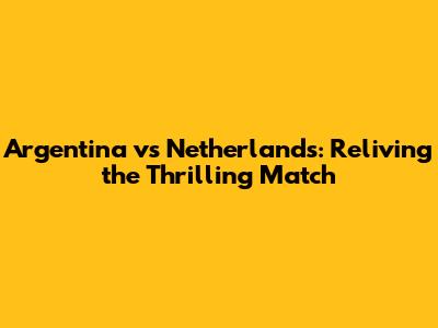 Argentina Vs Netherlands: Reliving The Thrilling Match