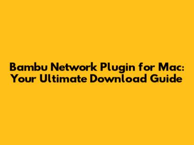 Bambu Network Plugin For Mac: Download Guide