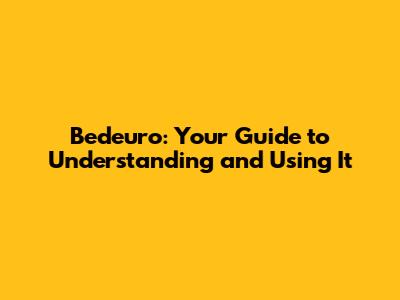 Bedeuro: Your Guide To Understanding And Using It