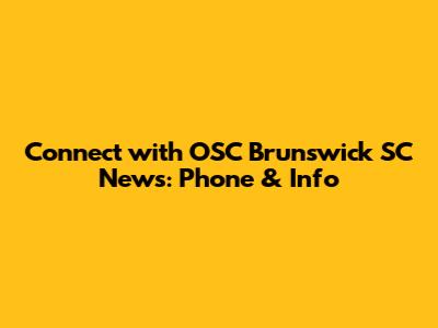Connect With OSC Brunswick SC News: Phone & Info