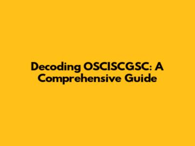 Decoding OSCISCGSC: A Comprehensive Guide