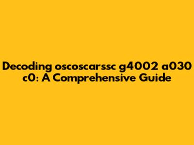 Decoding Oscoscarssc G4002 A030 C0: A Comprehensive Guide