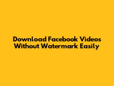 Download Facebook Videos Without Watermark Easily