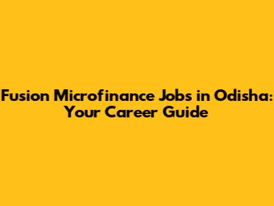 Fusion Microfinance Jobs In Odisha: Your Career Guide