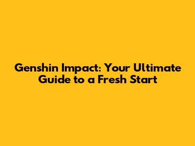 Genshin Impact: Your Ultimate Guide To A Fresh Start