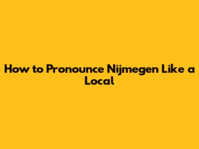 How To Pronounce Nijmegen Like A Local