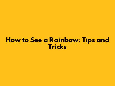 How To See A Rainbow: Tips And Tricks