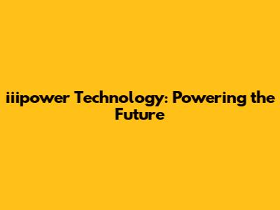 Iiipower Technology: Powering The Future