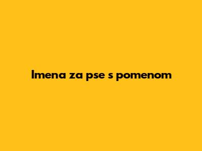 Imena Za Pse S Pomenom
