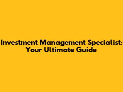 Investment Management Specialist: Your Guide