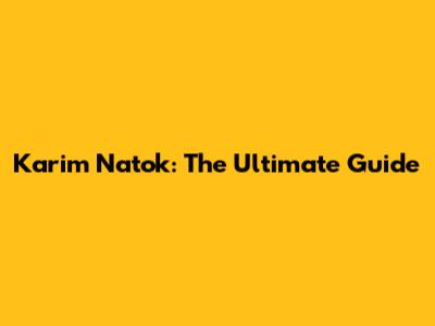 Karim Natok: The Ultimate Guide