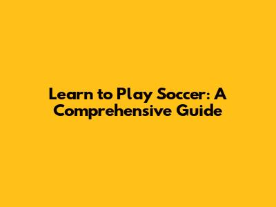 Learn To Play Soccer: A Comprehensive Guide