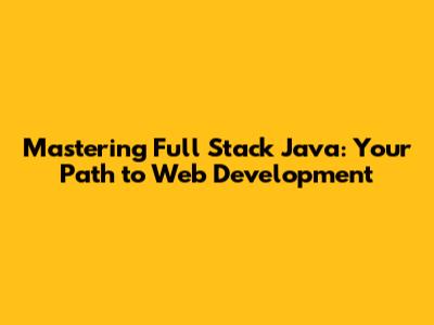 Mastering Full Stack Java: Your Path To Web Development