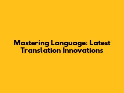 Mastering Language: Latest Translation Innovations