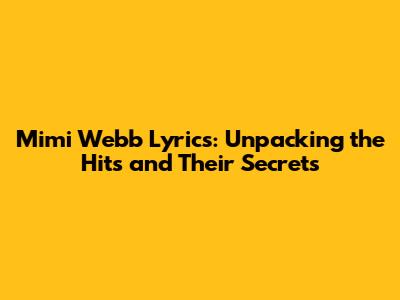 Mimi Webb Lyrics: Decoding Her Hit Songs And Hidden Meanings