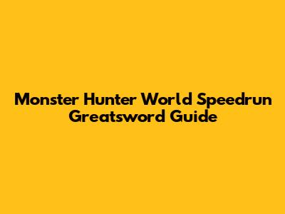 Monster Hunter World Speedrun Greatsword Guide