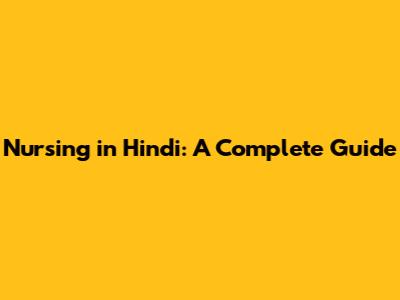 Nursing In Hindi: A Complete Guide
