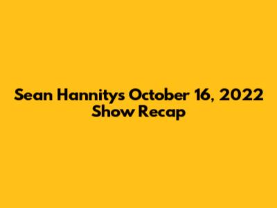 What's up, guys! Let's dive into the highlights from Sean Hannity's show on October 16, 2022. Sean always brings the heat, and this episode was no exception. We're going to break down the key topics and discussions that made this broadcast a must-watch for many. So, grab your favorite beverage, settle in, and let's get this recap rolling!