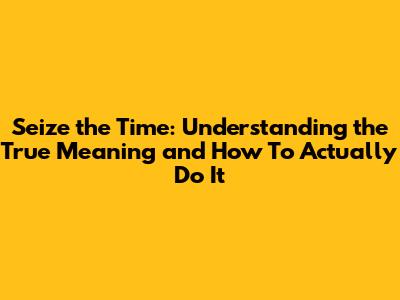Seize The Time: What It Really Means & How To Do It