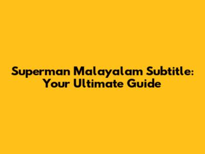 Superman Malayalam Subtitle: Your Ultimate Guide