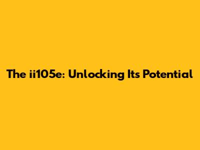 The Ii105e: Unlocking Its Potential