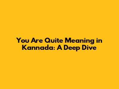 Understanding 'You Are Quite' In Kannada: A Comprehensive Guide