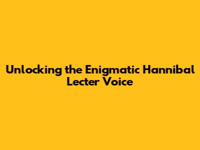 Unlocking The Enigmatic Hannibal Lecter Voice