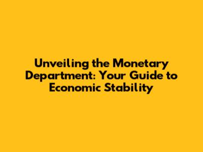 Unveiling The Monetary Department: Your Guide To Economic Stability
