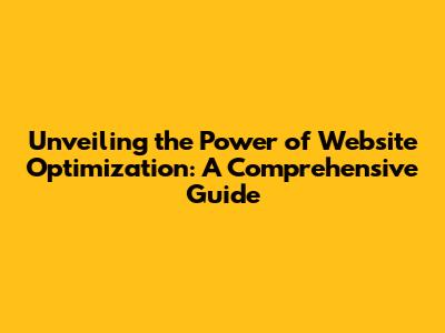 Unveiling The Power Of Website Optimization: A Comprehensive Guide